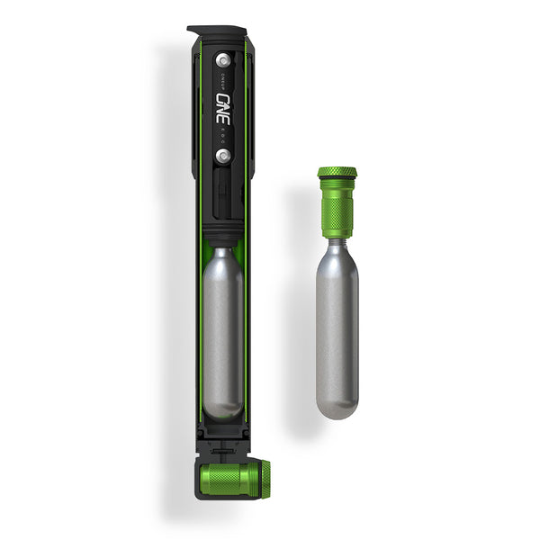 The inflator head of the pump (the anodized green part) doubles as a CO2 inflator head, simply unthread it from the pump and you can thread your CO2 right onto it.